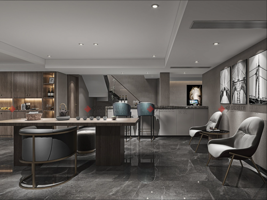 | 設(shè)計(jì)說明:這套現(xiàn)代風(fēng)格別墅,以原木棕色為基調(diào),突出現(xiàn)代感與高檔氛圍,致力于打造一個(gè)簡約大氣的風(fēng)格空間;室內(nèi)布局精心打造,細(xì)節(jié)之處注入藝術(shù)元素,讓空間更顯文藝與品質(zhì)。線條分明、空間層次感強(qiáng),用簡單的美學(xué)設(shè)計(jì)手法,就能打造出溫馨、和諧的宜居家園。愜意觀景落地大窗、開放式茶室、貼心套臥,旨在提升居住舒適感??蛷d空間整體以白色、棕色為基調(diào),地磚采用通鋪方式,搭配紋理感的地毯,瞬間營造出了大氣的質(zhì)感;布藝沙發(fā)舒適而自由,時(shí)尚造型的背景墻讓整個(gè)空間的視覺更大氣。襯以休閑放松的閱讀角落,讓居者在舒適和藝術(shù)之間找到平衡。茶室設(shè)計(jì)營造出東方美學(xué)韻味,簡潔、大方的空間設(shè)計(jì)質(zhì)感滿滿,長方形茶桌勾勒出方寸間的規(guī)矩方圓,為使用者帶來更好的社交體驗(yàn)。主臥散發(fā)出沉穩(wěn)、簡潔、安然的味道,深色沉穩(wěn)的木地板傳遞出自然溫暖,空間回歸居住本身,讓美和功能達(dá)到平衡。 | |||