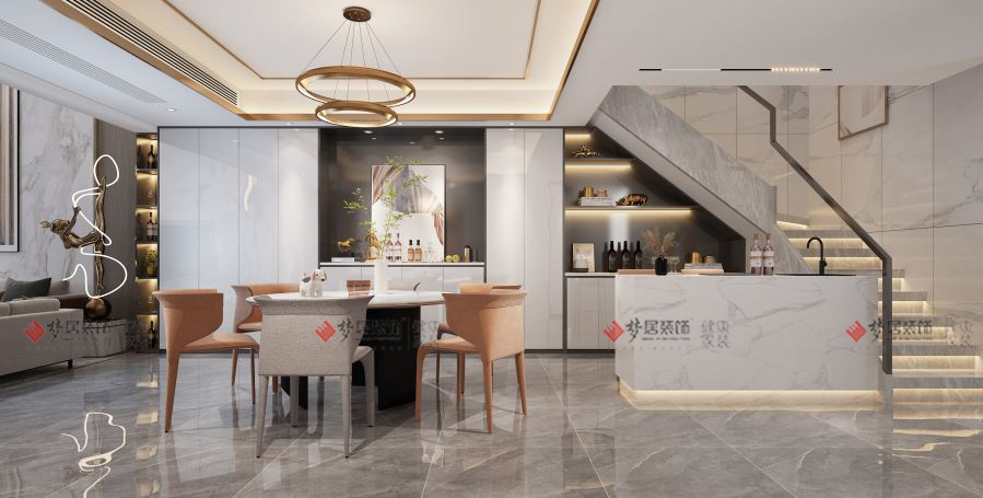 | 設(shè)計(jì)說明:280㎡的復(fù)式空間建筑,墅級裝修品質(zhì),設(shè)計(jì)師運(yùn)用了大量燈光元素制造氛圍,搭配黃銅質(zhì)感,打造輕奢高級空間,演繹出“低調(diào)的奢華”??筒蛷d連貫開闊,大理石鋪設(shè)質(zhì)感高級,燈光的實(shí)際令空間增色不少。生活的品質(zhì)與空間的藝術(shù)展現(xiàn)得淋漓盡致,搭配細(xì)節(jié)設(shè)計(jì)使整個(gè)空間溫馨舒適??⒑谏疤蓟业戎行陨实淖⑷耄喖s大氣,中給人安靜平和、優(yōu)雅精致的居住體驗(yàn),讓房間充滿浪漫、溫馨的氛圍感受。 | |||