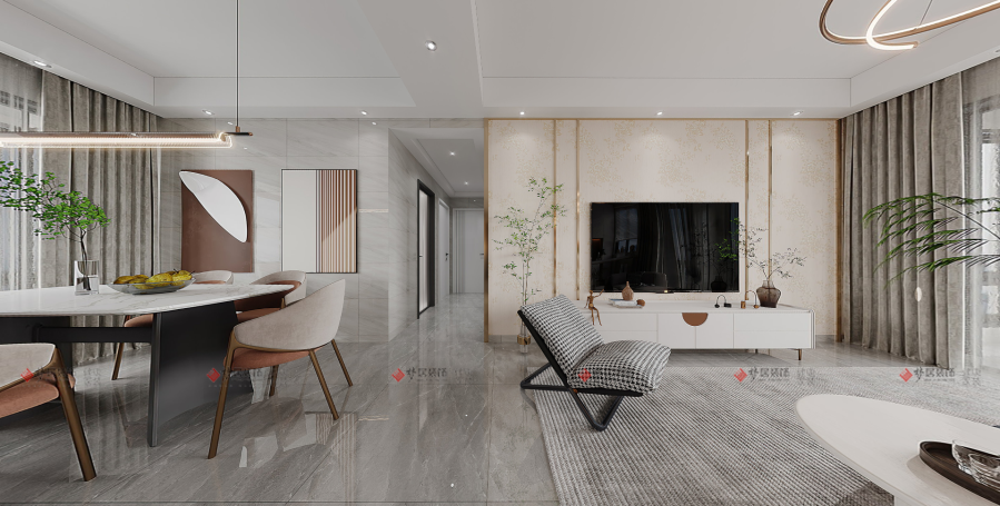 | 設(shè)計說明:現(xiàn)代風(fēng)格家居的空間設(shè)計結(jié)構(gòu)特別明顯,整體的空間利用率也很高,設(shè)計師注重舒適與創(chuàng)新,選用的家具以簡約為主,但又不失色彩的變化。在家具配置上,淺色系列家具獨特的光澤使家具倍感時尚,具有舒適與美觀并存的享受。地面材料以石材為主,空間木色用于局部作為裝飾,以綠色植物為襯托,使空間愜意又舒適,為業(yè)主打造出一個兼具現(xiàn)代精簡時尚與溫馨的室內(nèi)空間。 | |||