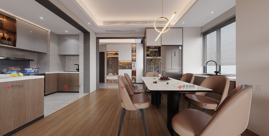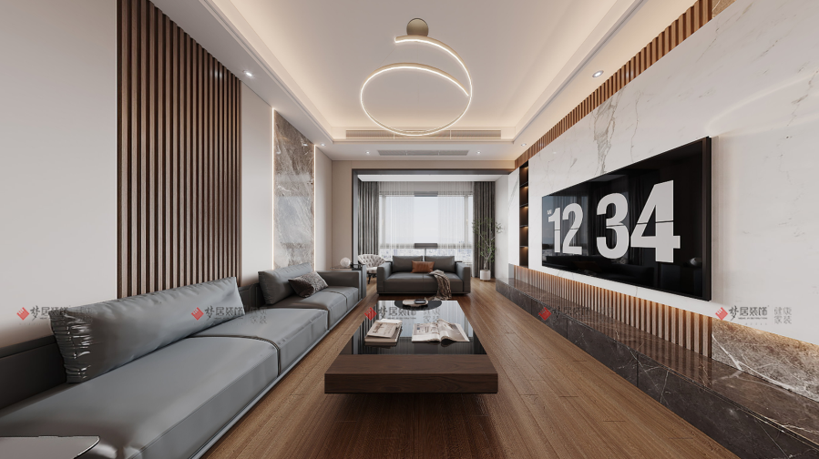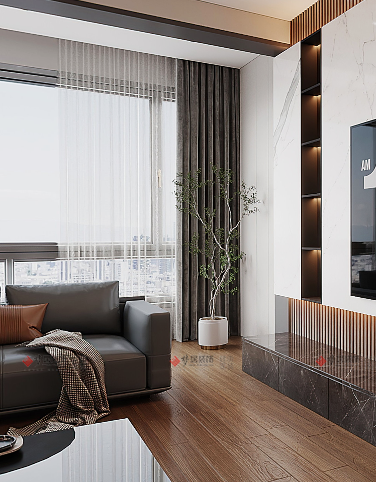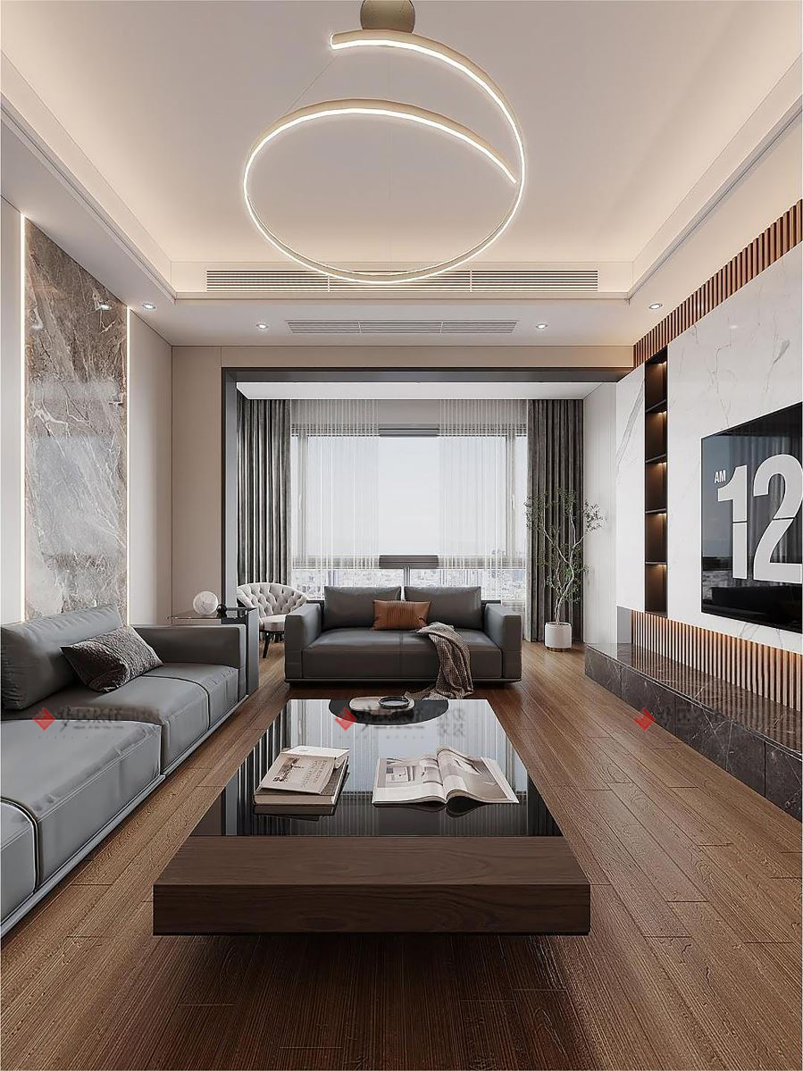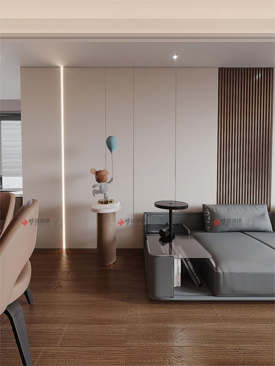 | 設(shè)計(jì)說明:本案業(yè)主對生活品質(zhì)、時(shí)尚都有著自己獨(dú)特的追求,設(shè)計(jì)師以業(yè)主及家人的生活習(xí)慣、喜好為引導(dǎo),根據(jù)戶型結(jié)構(gòu)把控整體空間設(shè)計(jì),在使空間功能、形式得以滿足的同時(shí),為業(yè)主打造個(gè)性品位的舒展,于細(xì)節(jié)處還原空間的溫度與精致。大塊的巖板做造型裝飾和木地板搭配,為空間帶來沉穩(wěn)優(yōu)雅的氣質(zhì);貫穿整體空間的線型燈帶帶來精致時(shí)尚的觀感,燈光與不同材質(zhì)的組合搭配呈現(xiàn)輕奢質(zhì)感,將氛圍感拉滿,打造出舒適浪漫的現(xiàn)代精致美宅。 | |||