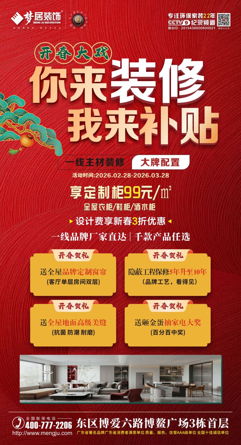 時(shí)間:2026-02-28開春裝修別等了!夢(mèng)居裝飾放大招??