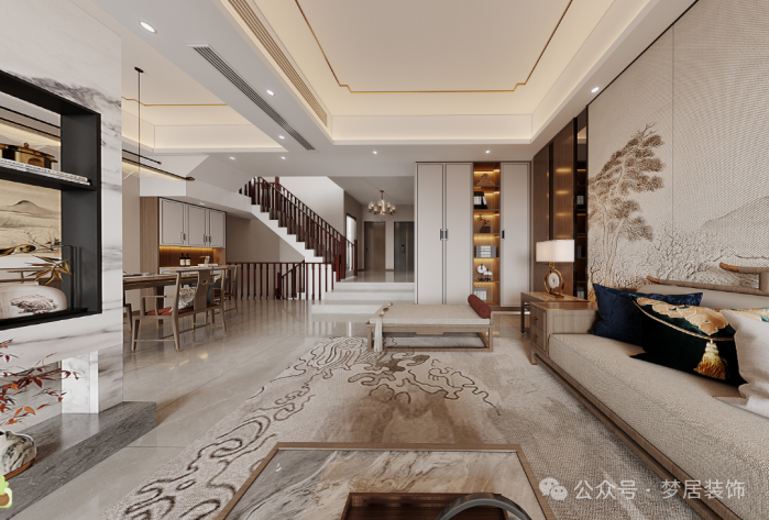 以東方美學(xué)之雅韻打造出蘊(yùn)藏深厚的文化底蘊(yùn)與現(xiàn)代審美追求新中式美學(xué)家居,讓居者在其中感受到豐富的文化層次與生活的溫度。設(shè)計(jì)師將功能性、美學(xué)風(fēng)格與業(yè)主的情感需求緊密結(jié)合,致力于為業(yè)主創(chuàng)造一個(gè)既實(shí)用又充滿東方藝術(shù)氛圍美感、能讓身心徹底放松的理想家園,使業(yè)主在這個(gè)暖馨舒適的住宅中盡情享受生活的美好,感受新中式住宅的典雅奢華,體驗(yàn)到其中無處不在的舒適松弛感。