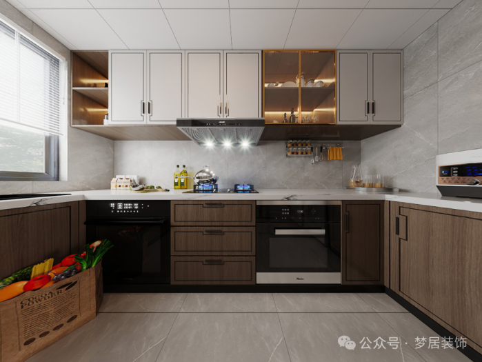 新中式櫥柜設(shè)計(jì)原木色彩沉穩(wěn)自然,設(shè)計(jì)質(zhì)感高級又不乏現(xiàn)代的簡約時(shí)尚。