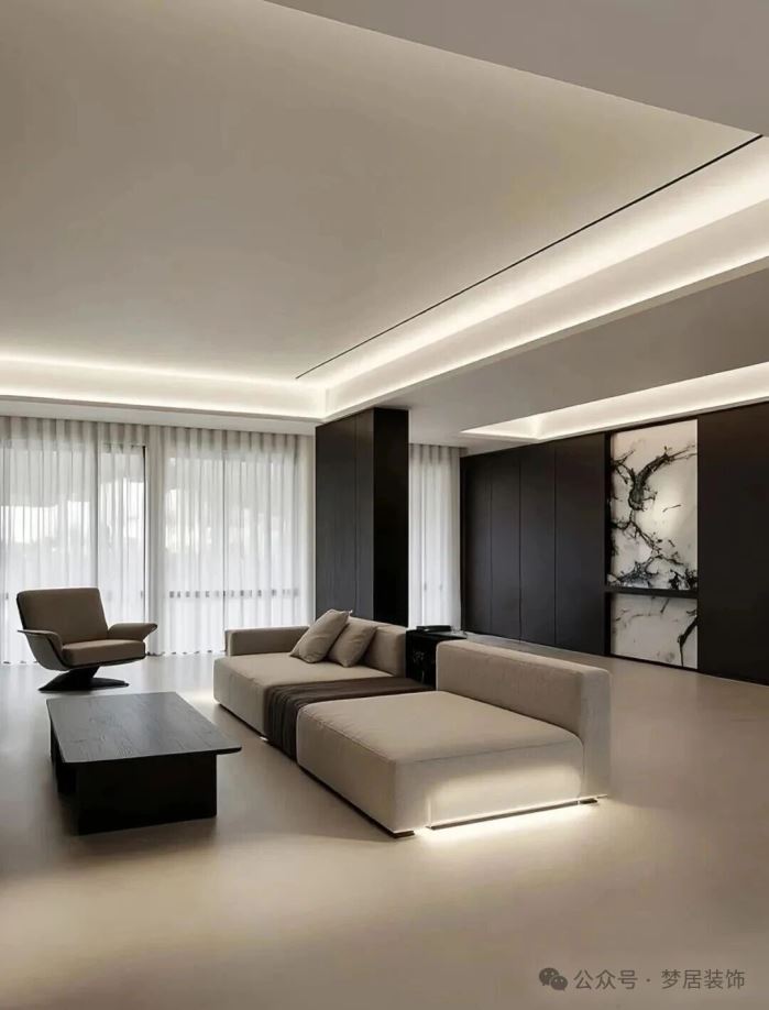 意式極簡風(fēng)格始終保持著理性與優(yōu)雅的姿態(tài),它強調(diào)空間的克制與留白,通過細(xì)節(jié)的雕琢,讓安靜成為一種深度的美學(xué)體驗,將高級與舒適完美融合。