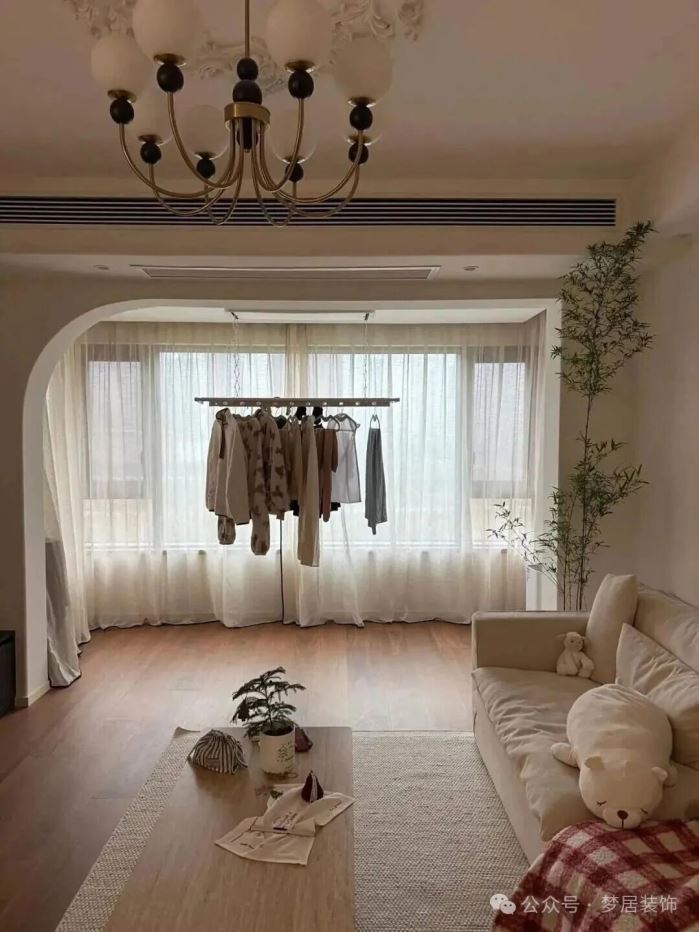 小戶型只有一個陽臺,要解決洗衣晾曬,晾衣架直接裝陽臺,衣服掛著顯凌亂,從客廳一眼看過去雜亂無章。