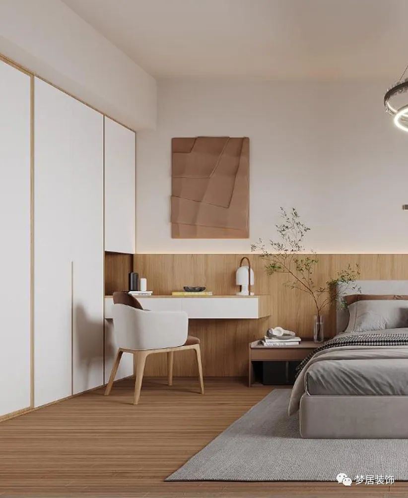 淺色地板給人開闊感,讓房間在視覺上顯得更明亮。