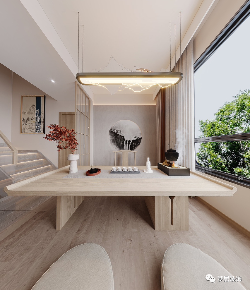 人與自然融合,將內(nèi)心的平和和寧靜致遠(yuǎn)引入室內(nèi)空間,讓回家是一種回歸和放松的體驗(yàn),遠(yuǎn)離城市的喧囂和浮躁。