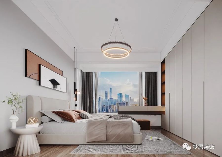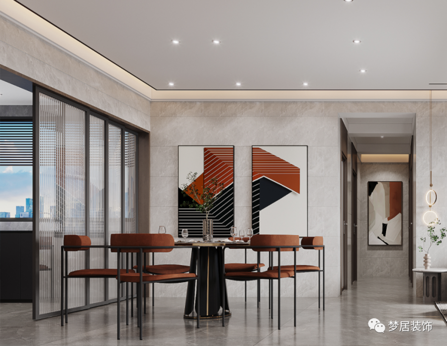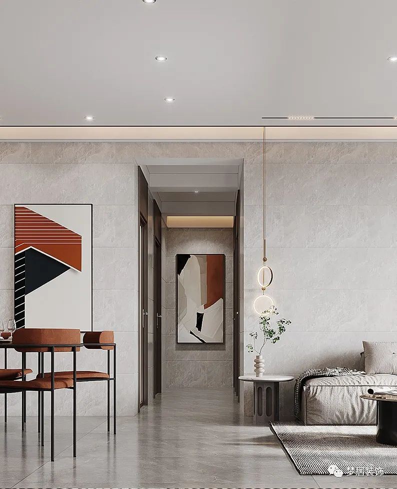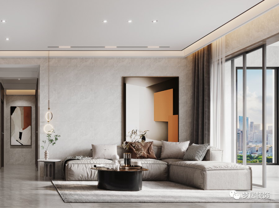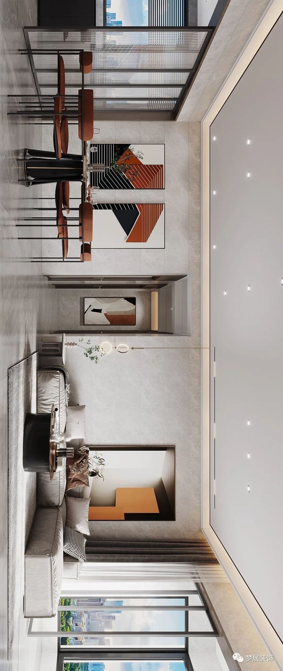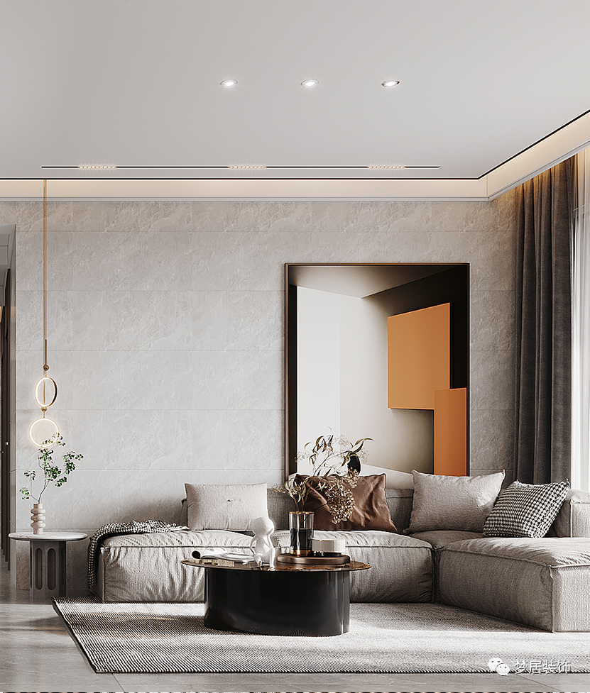 入戶玄關(guān)設(shè)置了鞋柜和物品收納區(qū)域,方便業(yè)主日常生活所需。入戶的設(shè)計(jì)也為室內(nèi)空間起到了一個(gè)緩沖的作用,保持室內(nèi)空間的私密性??蛷d搭配淺灰色地磚通鋪,“無主燈”設(shè)計(jì)令空間更加舒適寬敞。偏硬朗的現(xiàn)代風(fēng)格簡潔大氣,簡約隨性的布藝沙發(fā)搭配大幅現(xiàn)代畫作,極具設(shè)計(jì)感,干凈利落的線條簡潔優(yōu)雅,復(fù)古的橙色在現(xiàn)代空間中碰撞出不一樣的時(shí)尚感。臥室地面采用木地板鋪貼更溫馨,整墻衣柜滿足收納,借助飄窗設(shè)計(jì)出梳妝臺,節(jié)省空間區(qū)域。時(shí)尚的現(xiàn)代手法呈現(xiàn)出年輕人所青睞的新時(shí)代理想居所。