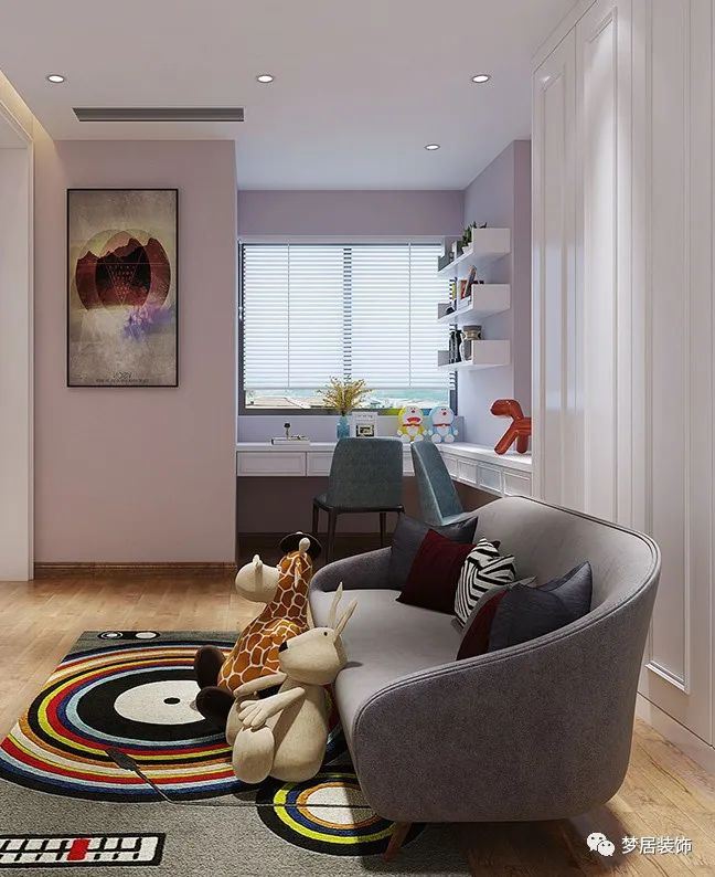 家有神獸,客廳的發(fā)揮考慮孩子成長和教育,在設計方面有所偏重。低齡的孩子在上學前幾年基本上是以玩兒為主,客廳可以裝修成孩子的活動區(qū),去掉大茶幾和帶棱角的家具,為孩子騰出更多活動區(qū)域;孩子大了,教育是繞不開的話題,除了玩樂之外,也要考慮興趣培養(yǎng),比如學鋼琴、畫畫之類的,這些空間也可以提前留出來。