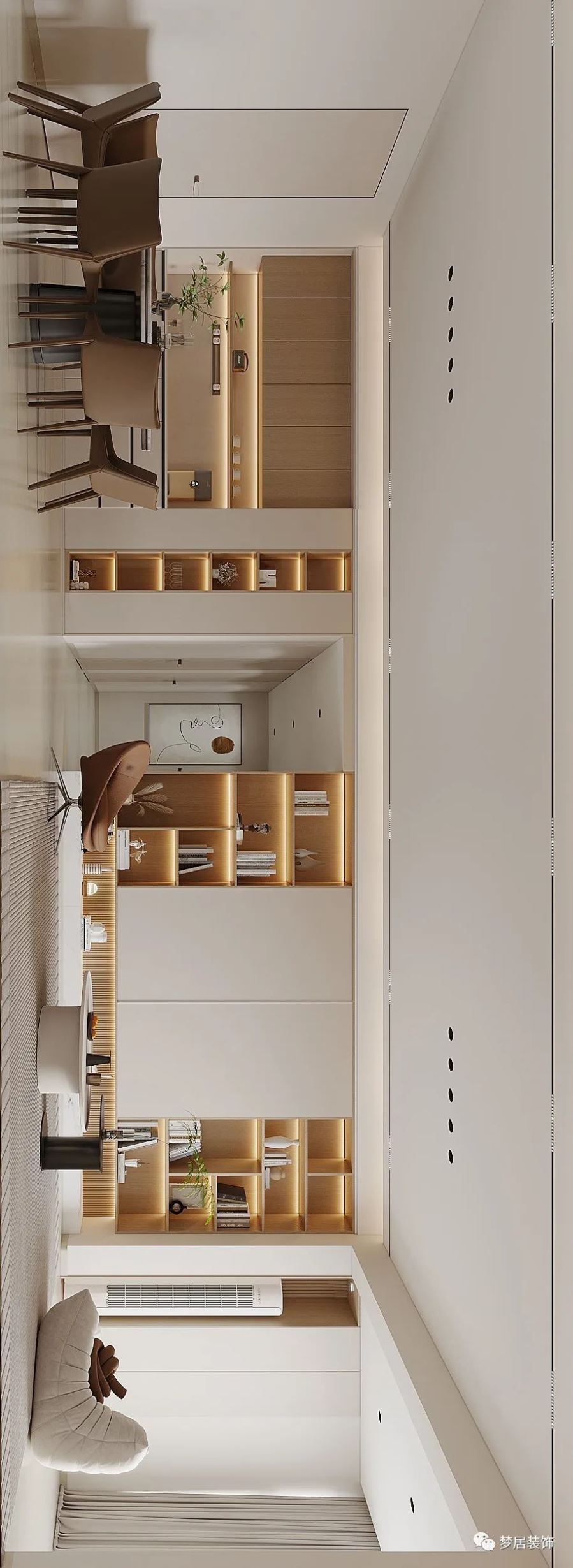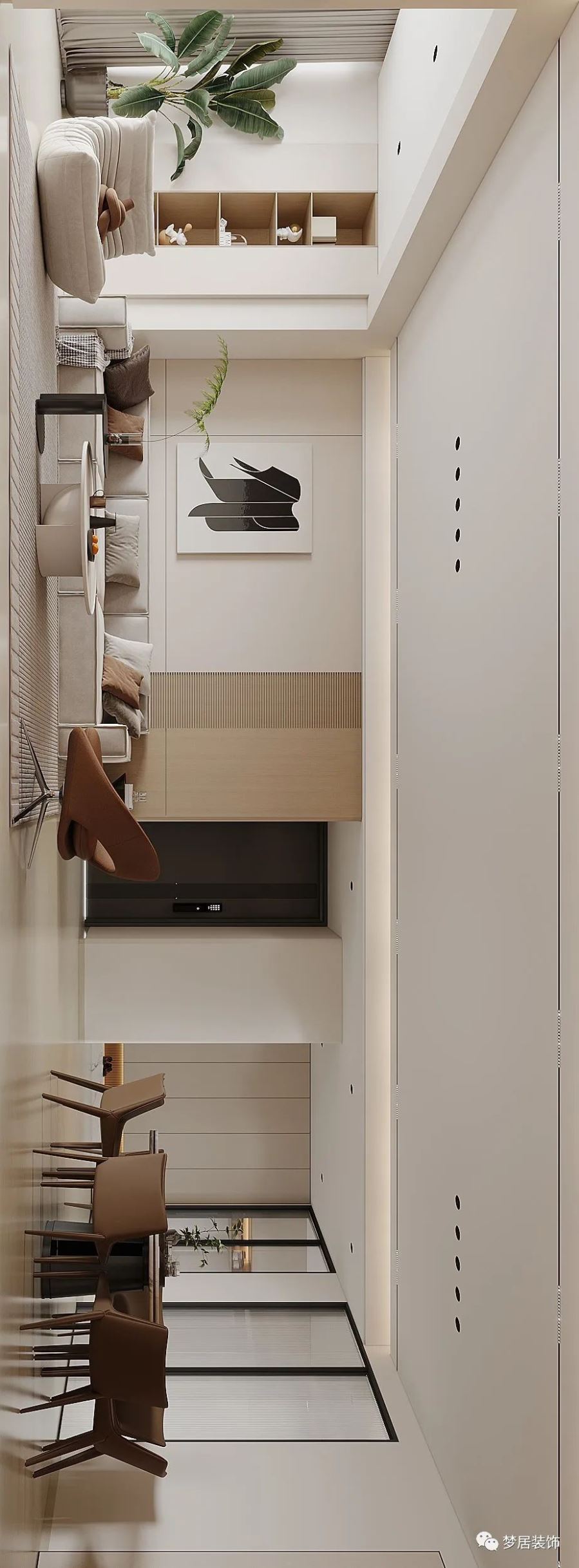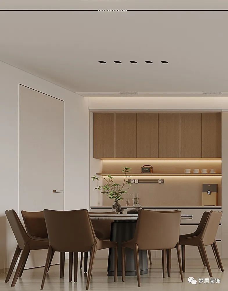 溫柔奶油風,微甜的奶茶色和醇厚奶咖色層層漸進,清淡透亮之中疊加變化,賦予了整個空間濃郁而純粹的香甜優(yōu)雅,搭配綠植,溫潤而高級,十分療愈。