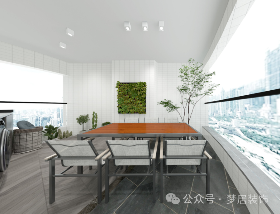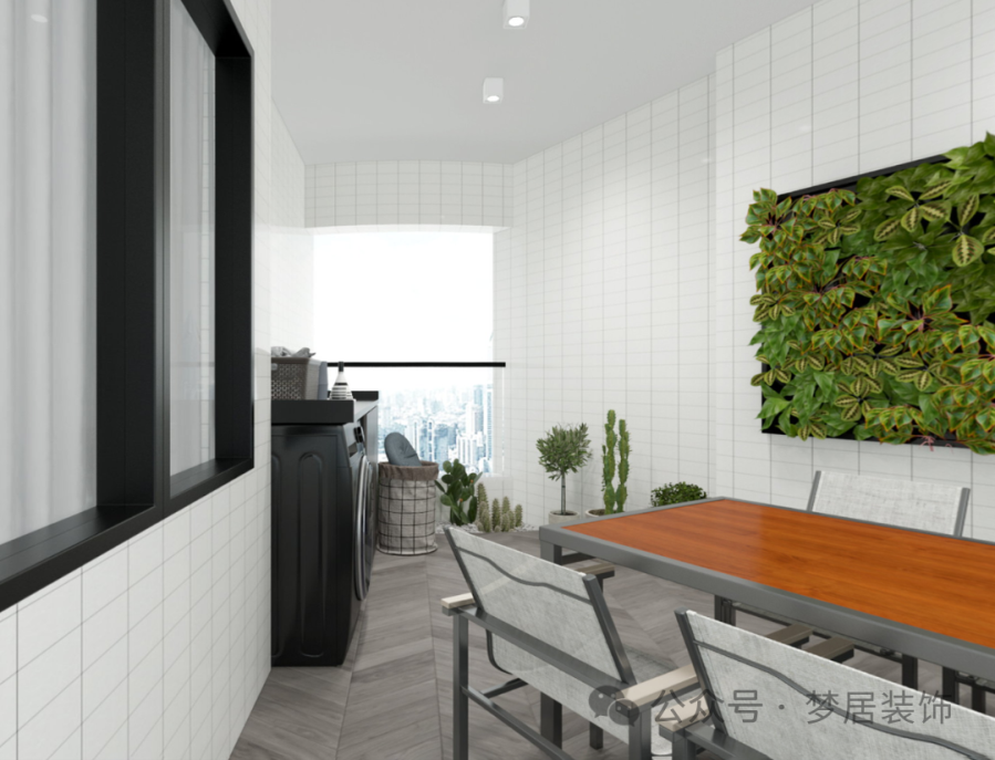 生活陽(yáng)臺(tái)寬敞舒適,玻璃護(hù)欄讓空間更通透,擺放上綠植點(diǎn)綴,造型簡(jiǎn)約的長(zhǎng)桌椅打造出愜意、舒適的感受,給人一種入戶小花園的感覺(jué),偶爾可以和家人或朋友開(kāi)一個(gè)小小的陽(yáng)臺(tái)派對(duì),輕松又美好。