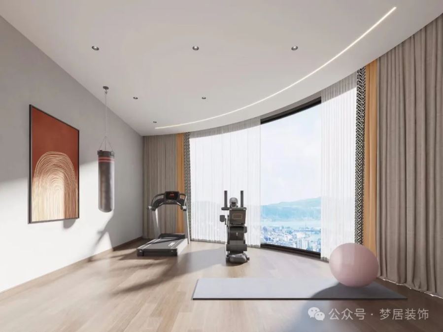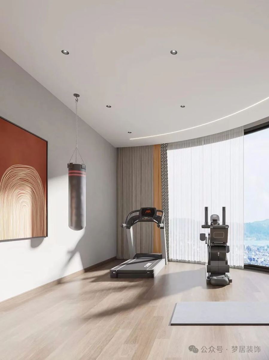 健身室活動區(qū)域舒適寬敞,放置健身器材,滿足家庭成員不同的鍛煉需求。裝飾簡單大方,地面選擇防滑耐用的材料,打造出既實用又美觀的健身空間,為家庭成員提供一個舒適、健康的運動環(huán)境。