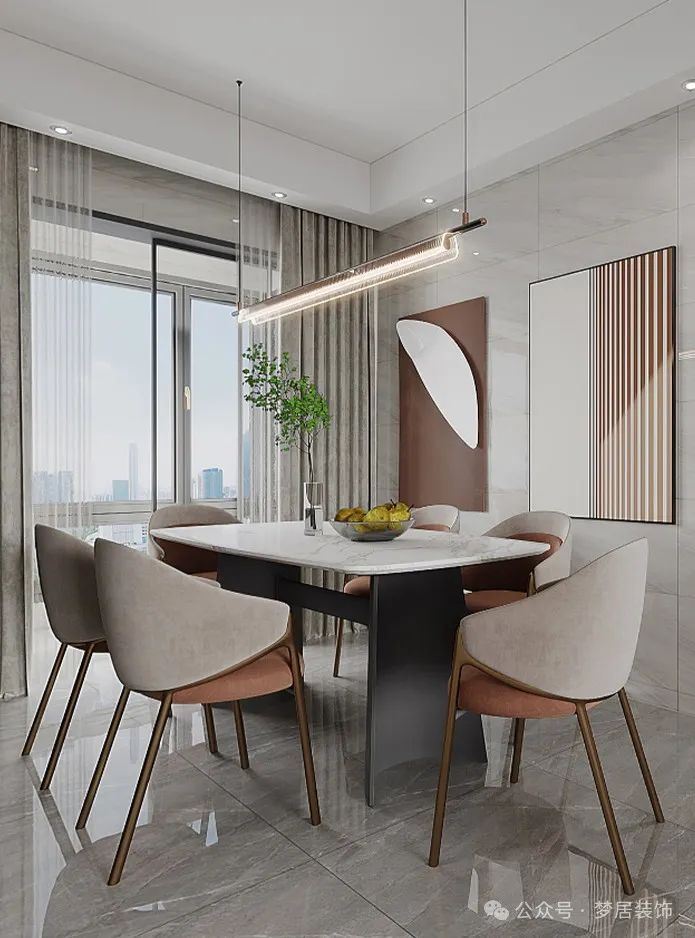 家中四季輪轉,三餐的煙火氣最能標記家的日常,現(xiàn)代簡約風格的餐廳將精致與愜意引入慢悠悠的日子中,品味著家?guī)淼氖孢m愉悅。