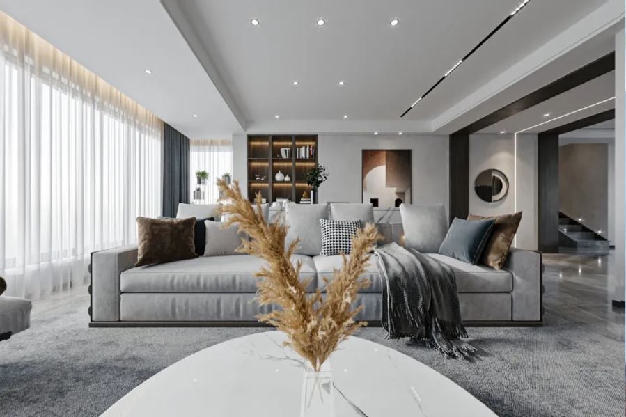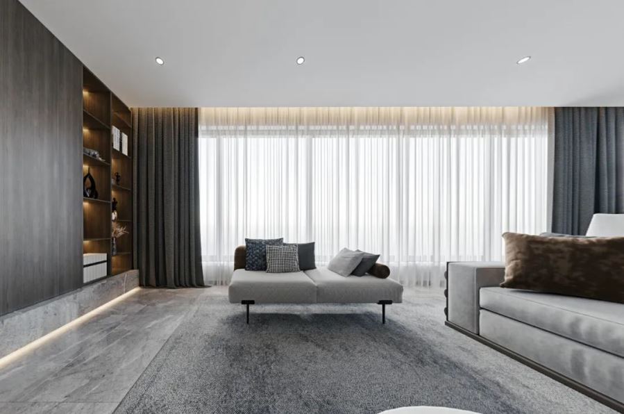 本案裝修注重高品質(zhì)與設(shè)計感,將優(yōu)雅時尚的質(zhì)感結(jié)合著現(xiàn)代材質(zhì)及裝飾技巧巧妙地呈現(xiàn)在居室中,展示著精致和高品位的生活態(tài)度。在設(shè)計師和業(yè)主的溝通下,整體色調(diào)以高級的中性色調(diào)為主色調(diào),通過材料、硬裝和軟裝的搭配,營造一個輕奢、時尚的舒適空間。材質(zhì)上結(jié)合大理石、巖板、木飾面、金屬、布藝等材料,凸顯現(xiàn)代輕奢的氛圍感,讓空間顯得優(yōu)雅又時尚。