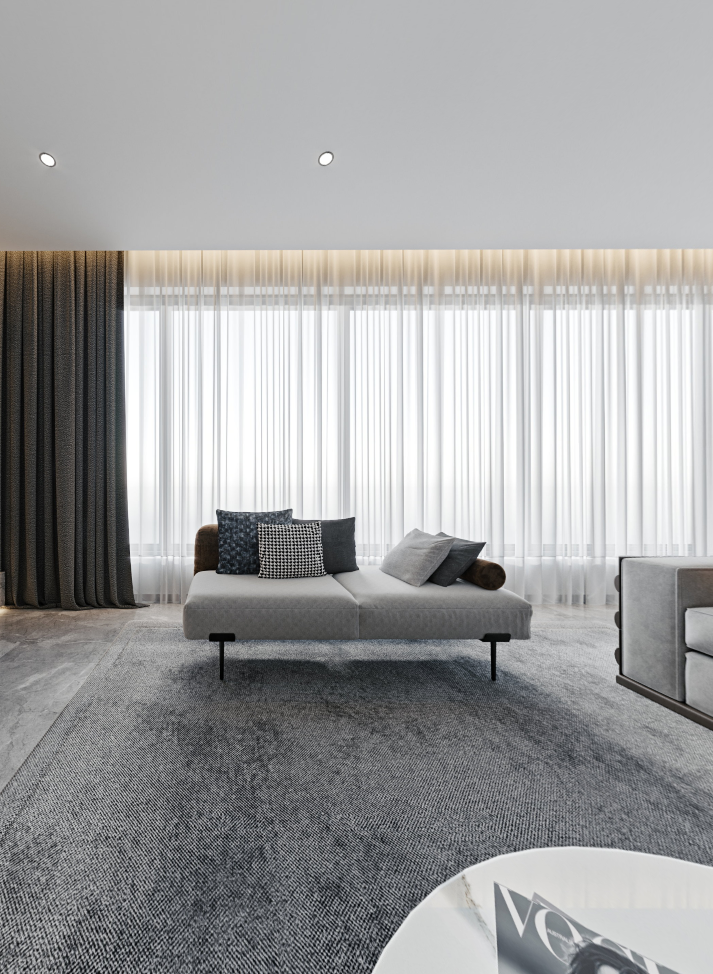 窗紗輕薄柔和,紗簾和布簾雙層搭配有效遮擋光線,也能營造出寧靜舒適的氛圍。自然光透過薄紗灑進(jìn)室內(nèi),溫暖而柔和。