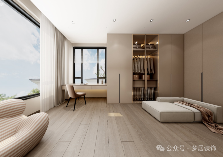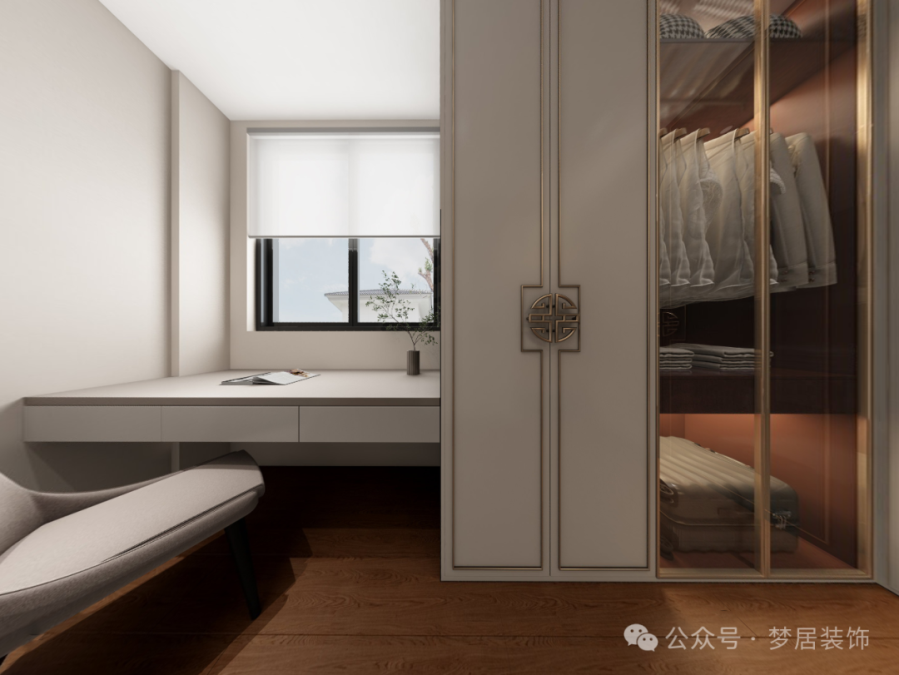 衣帽間設(shè)計(jì)也是舒適而優(yōu)雅,中式的色彩鋪就空間動(dòng)人的格調(diào),柔軟、放松且寧靜。