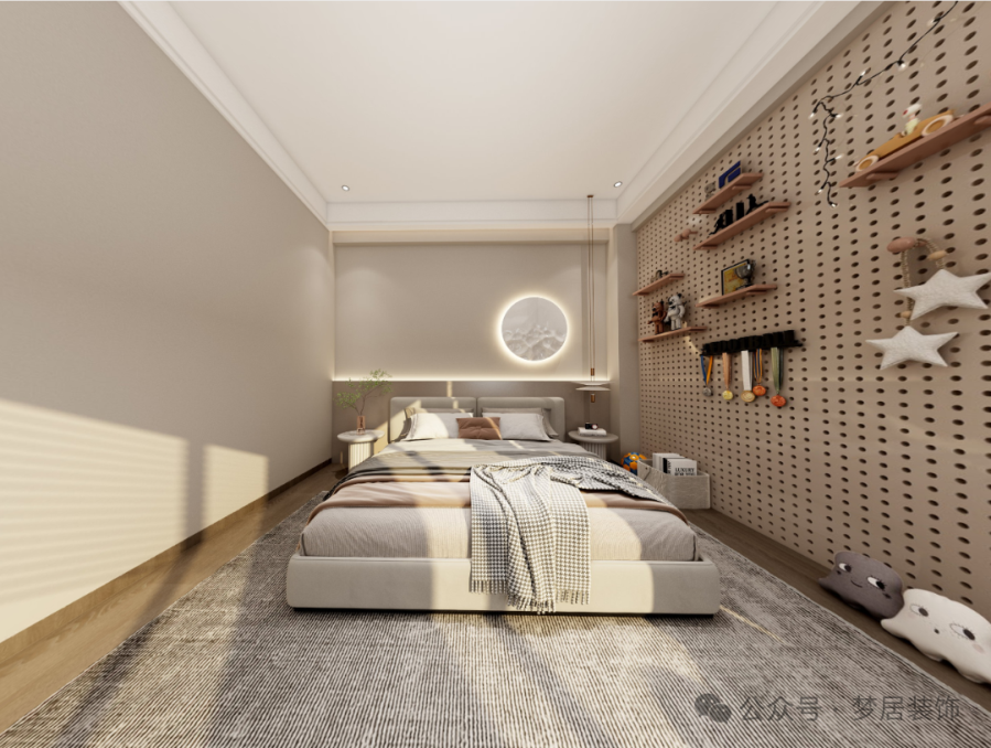 兒童房的空間更加的開敞、連貫,設(shè)計(jì)師別出心裁地創(chuàng)造出一個(gè)環(huán)形動(dòng)線,同時(shí)打造趣味性的空間體驗(yàn),讓孩子的成長空間更舒適。