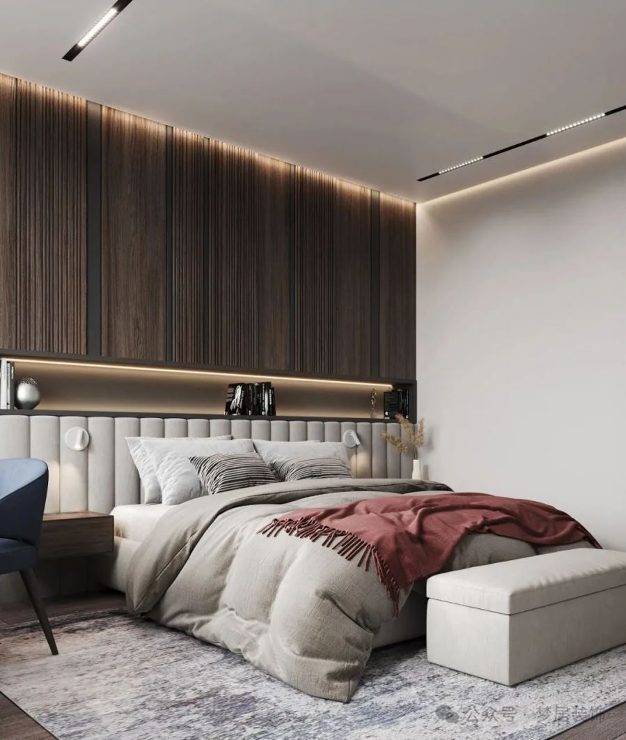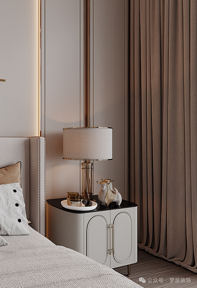 臥室的隔音做得好,能讓我們更高效休息。背景墻做軟包搭配燈帶,組合起來(lái)不僅能提升臥室的氛圍感,空間精致,隔音又實(shí)用。