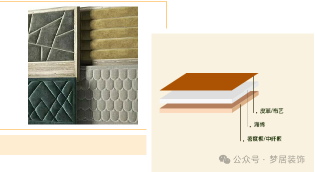 硬包是利用木工板或者密度板根據(jù)需要在墻面上做成各種造型,之后將邊緣做成直角或者45°的斜邊,最后使用皮革或布藝來(lái)做飾面包裝。