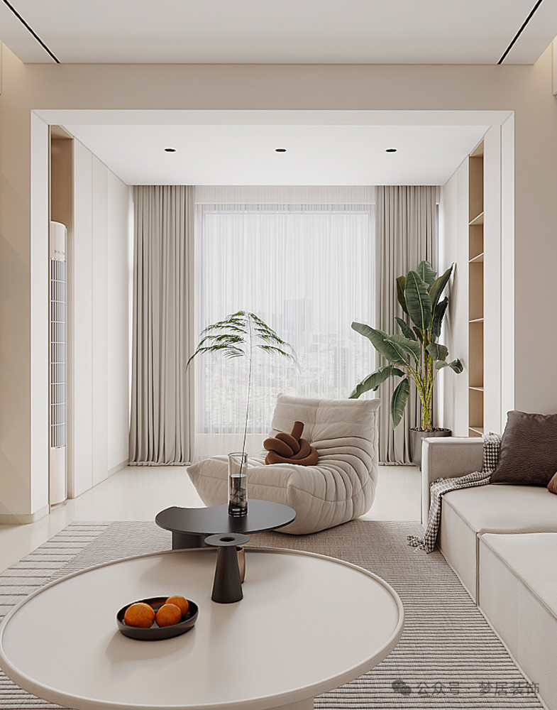 3.增強(qiáng)空間的區(qū)域感。陽(yáng)臺(tái)門對(duì)陽(yáng)臺(tái)和客廳空間進(jìn)行了分隔,使得空間的區(qū)域感更加強(qiáng)烈,陽(yáng)臺(tái)形成獨(dú)立小空間。