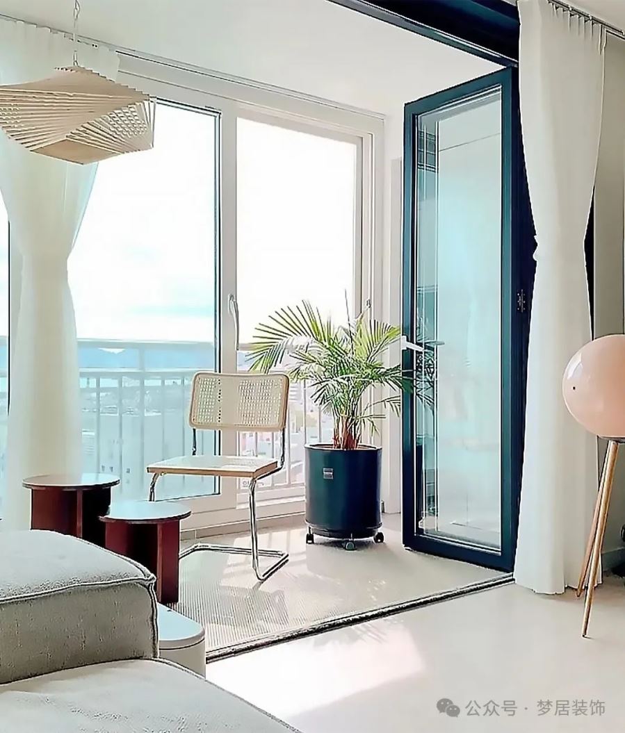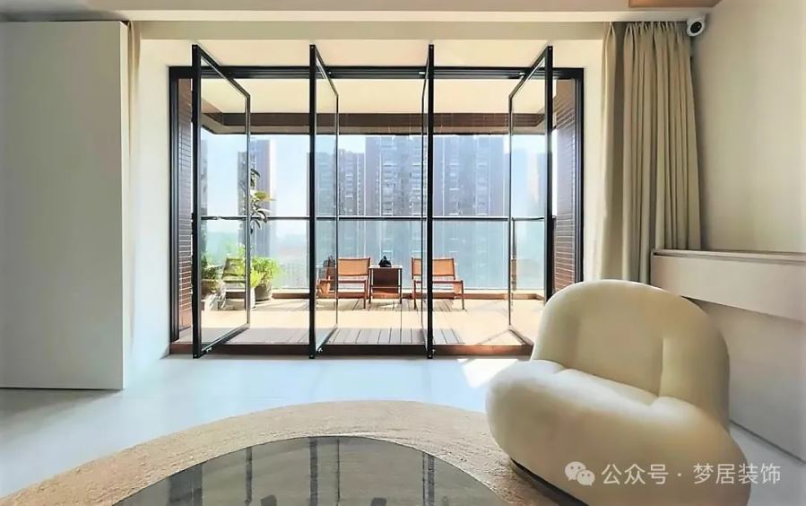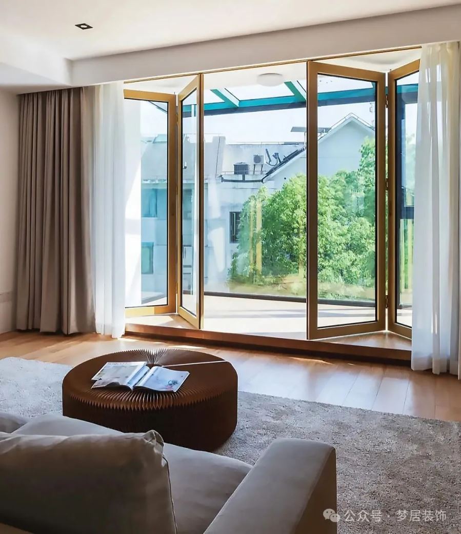 ③折疊門 :折疊門打開后占用空間面積更少。讓陽(yáng)臺(tái)和客廳更加寬敞大方,視線更加開闊。
