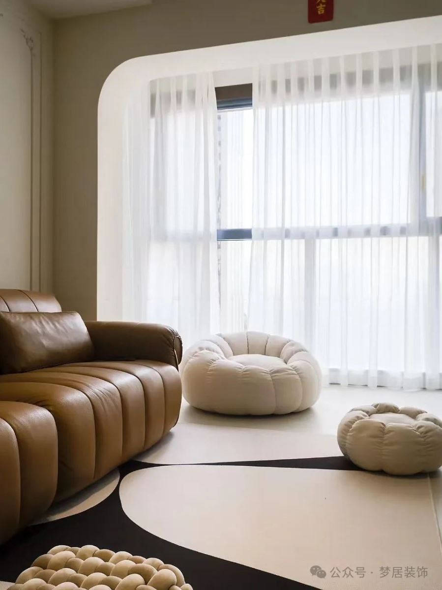 顏色選白色或復(fù)古綠、杏色、咖色,用弧形沙發(fā)、面包和云朵的造型會(huì)更有氛圍感,然后再搭配一個(gè)單椅。拒絕深色L型沙發(fā)。