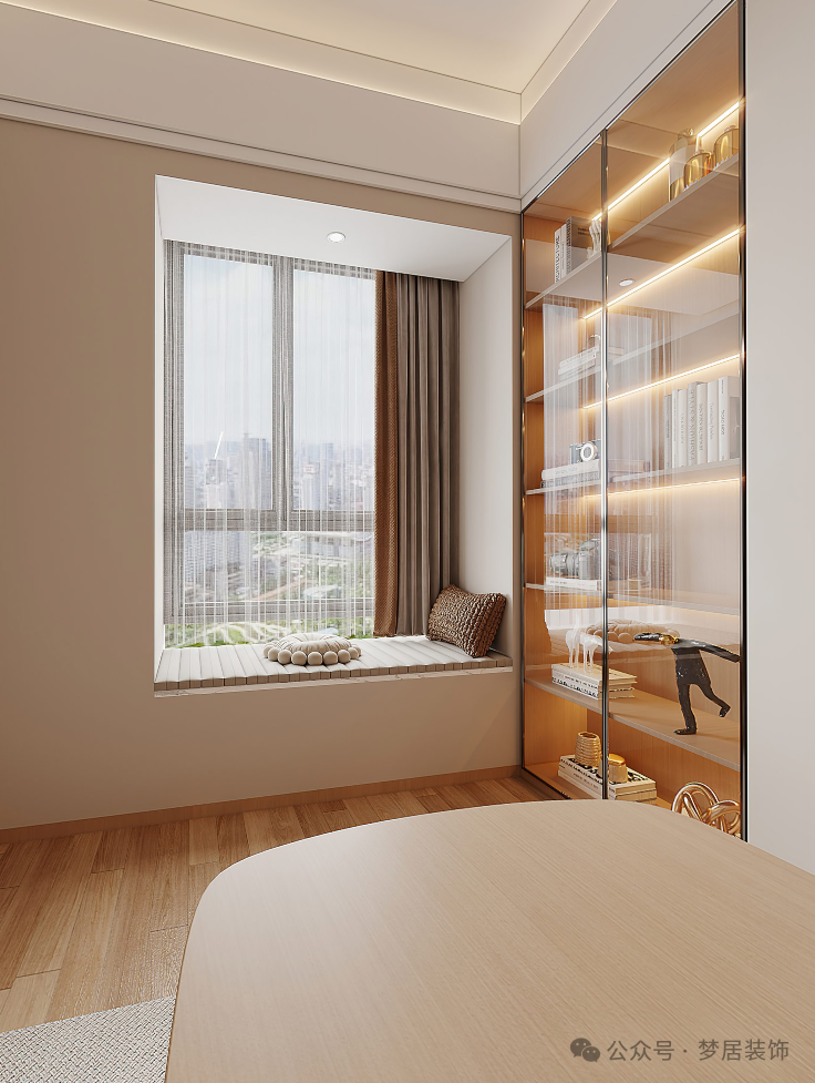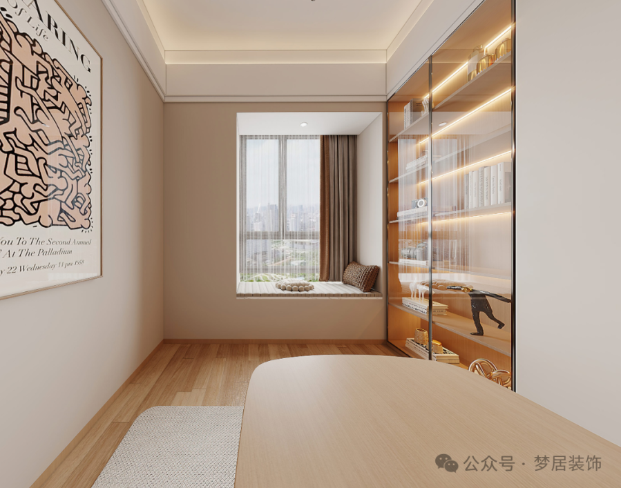 預留了一個空間作為書房??臻g合理布局收納,展示+儲物都兼得,呈現出規(guī)整的空間感,簡約大氣又實用。