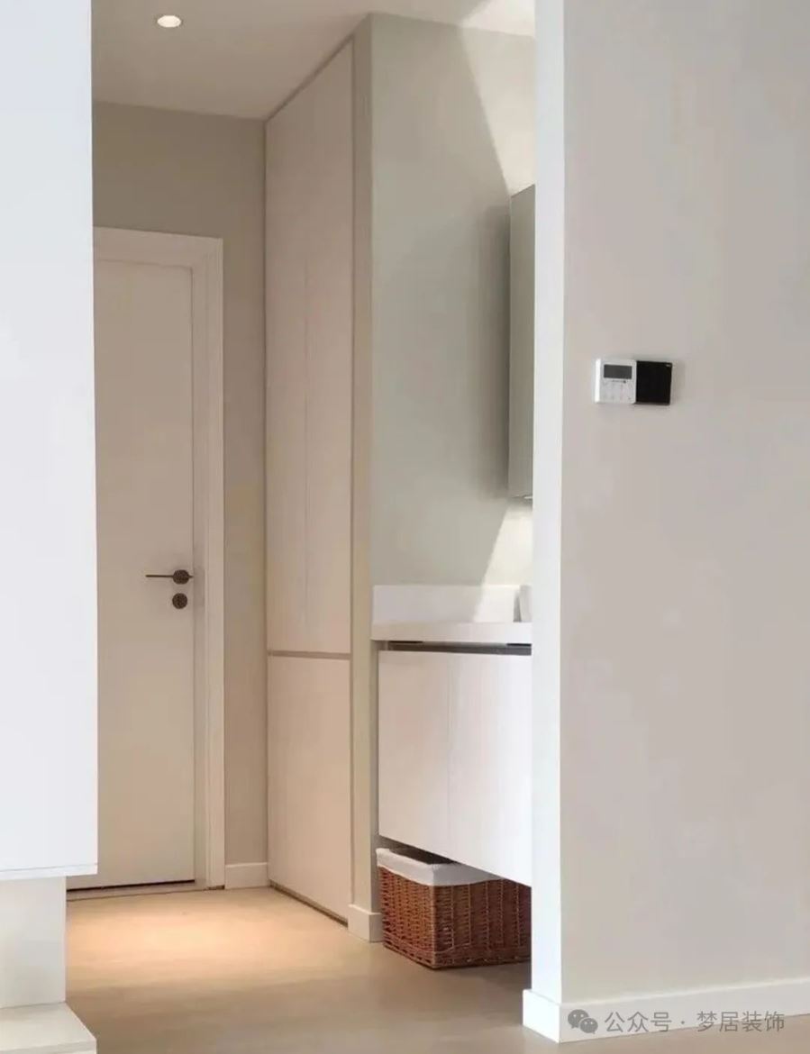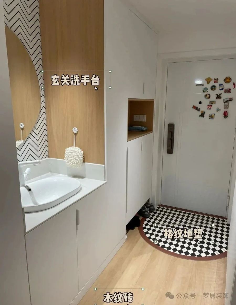 在玄關(guān)區(qū)加個下沉式設(shè)計再配上洗手臺,簡直是提升衛(wèi)生和便利的雙重升級。想想看,進門后先洗個手,把外面的灰塵、細菌都攔在玄關(guān)外,這樣家里更干凈、健康,尤其對家有孩子或愛養(yǎng)寵物的人特別實用。