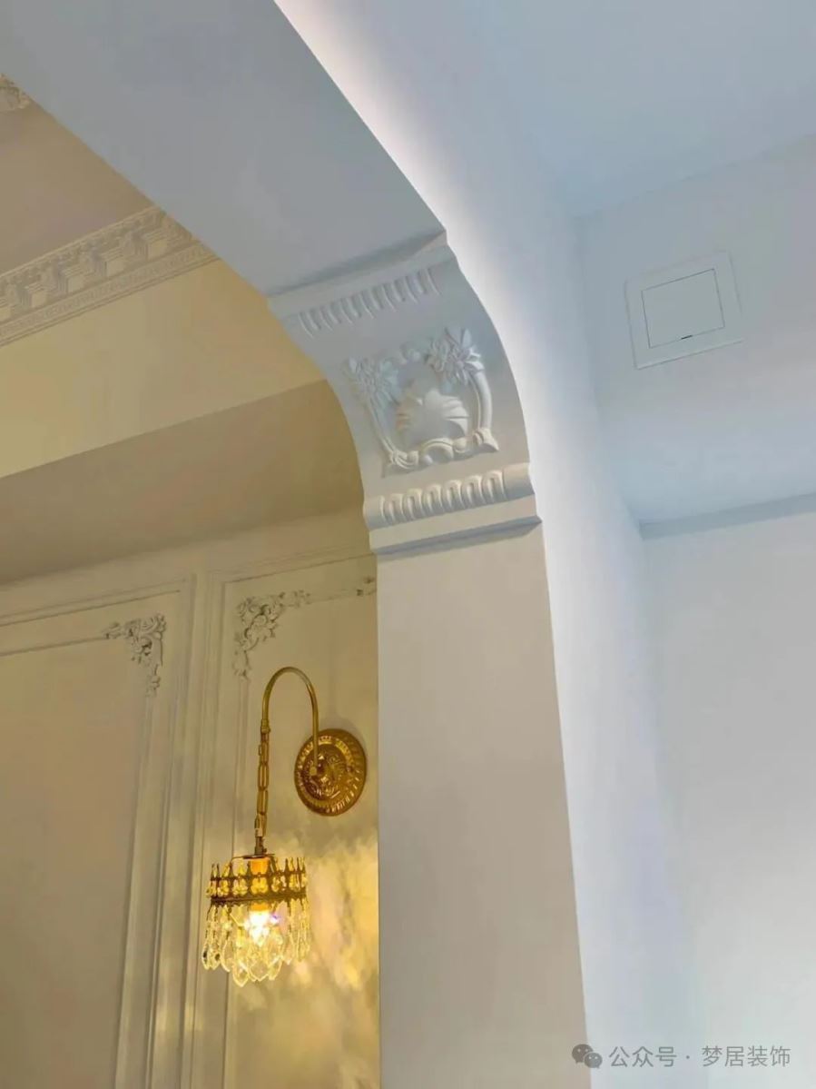 如果只能利用一邊的墻垛,也可以單側(cè)做拱形。做單邊拱形門洞時(shí)弧度可以大膽一點(diǎn),這樣會(huì)更圓滑更精致。